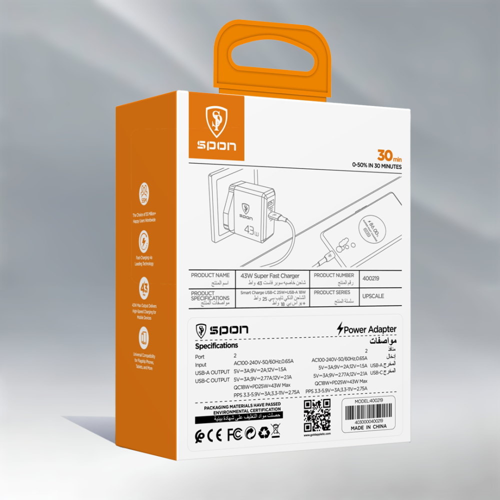 راس شاحن + PDUSB قوة 43 وات 400219-SPON