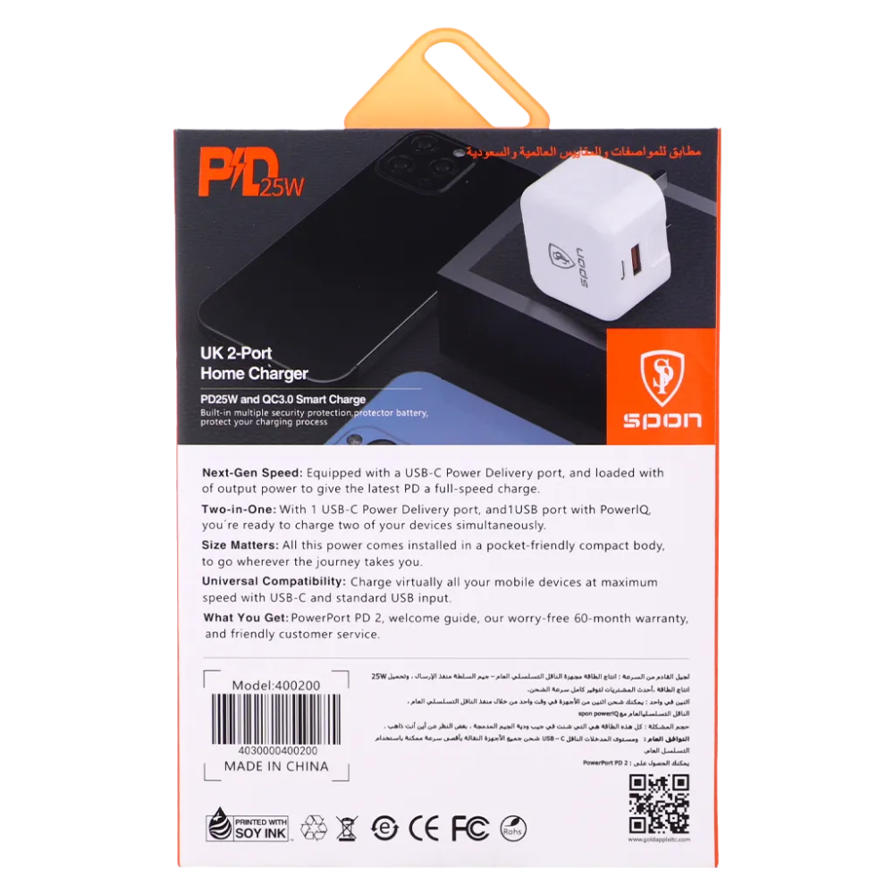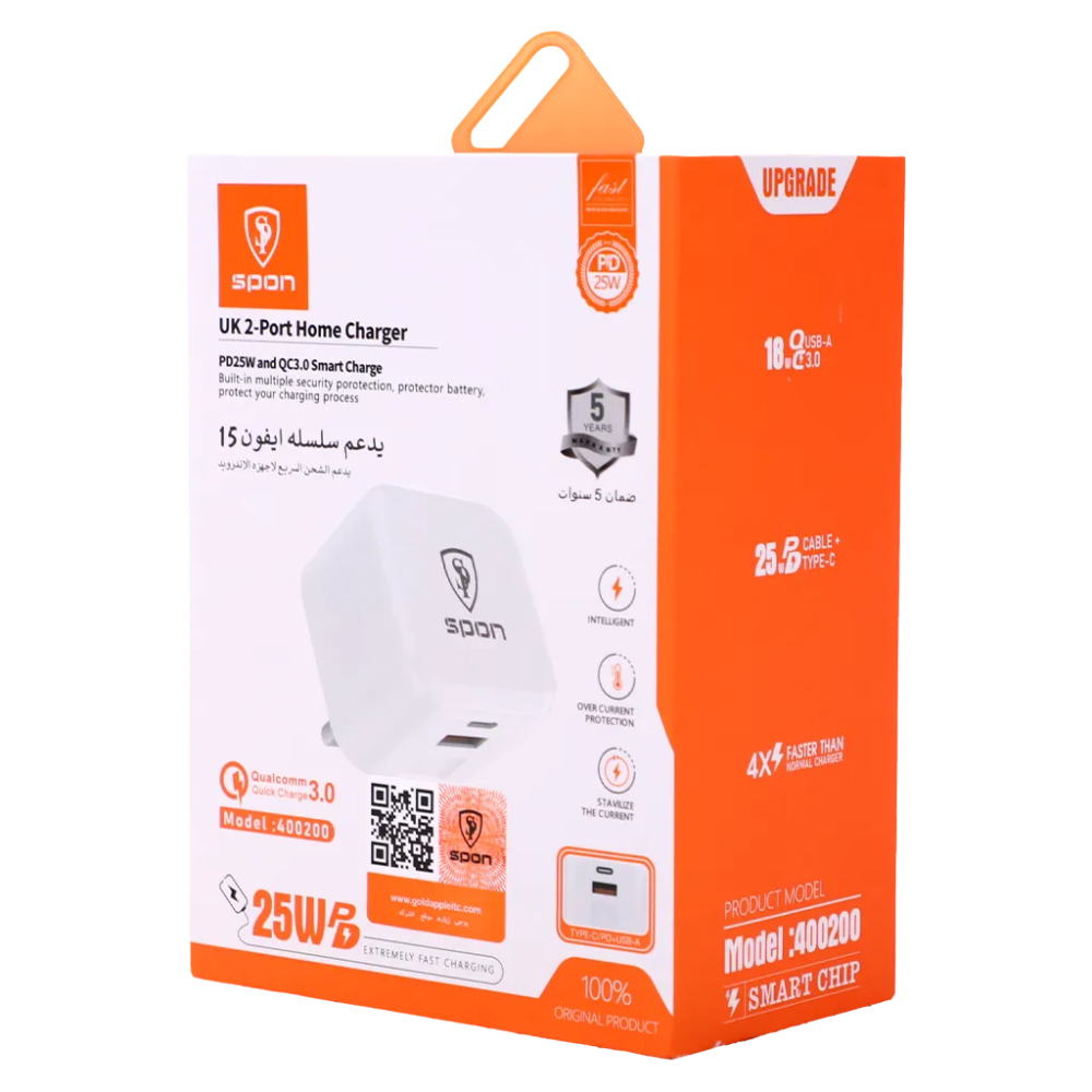 سبون راس شاحن جدارى مخرجين يو اس بى و تايب سى 25 وات