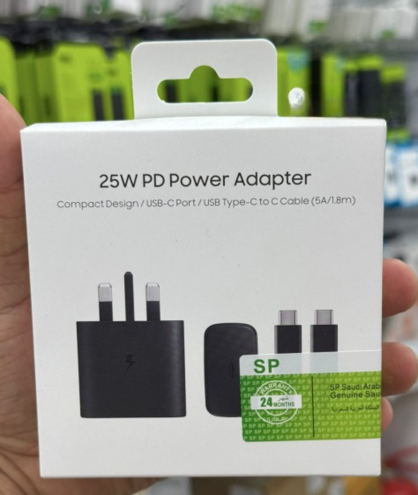 شاحن طاقة PD بقدرة 25 واط – تصميم مدمج – منفذ USB-C – كابل Type-C إلى Type-C (5 أمبير / 1.8 متر)